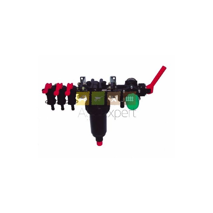 Vanne générale + vanne régulatrice mécanique + vanne de section (sans retour compensé). Filtre 150 l /min.