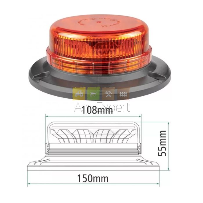 Gyrophare LED très compact montage fixe 12V-24V, Homologué route R65-R10, antiparasité Classe 3, Camion de chantier, chargeur telescopique, engins de chantier, Chariot élévateur...