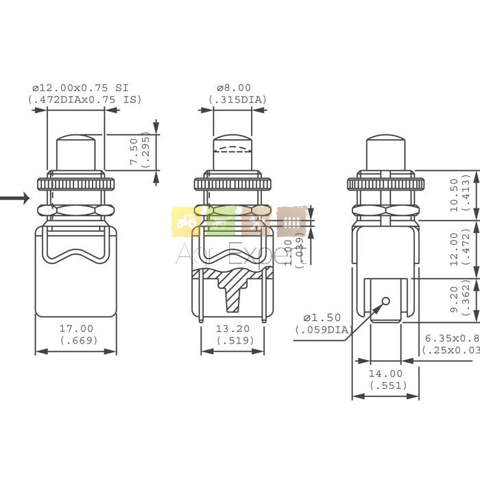 Interrupteur à poussoir APEM unipolaire Momentané cosses à clipser NO