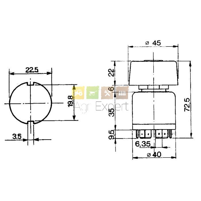 . Poussoir : avertisseur 5a - temps de connexion 1 minute