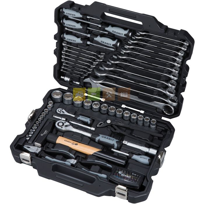 • dans un coffre à outils GRANIT BLACK EDITION de haute qualité et très stable avec verrous métalliques et système de rangement