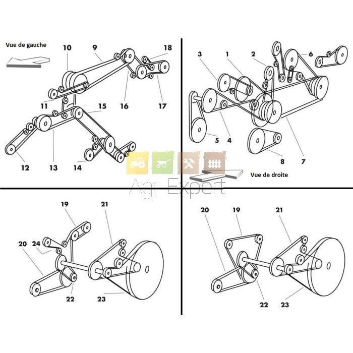 Jeu de courroie Cde de coupe MB New-Holland TF46,TX34, TX36, 89504547 Deutz M 3480, M 3580, 1141850