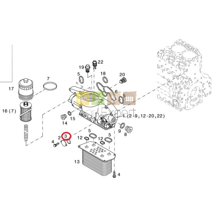 Joint de support refroidisseur moteur TCD 6.1, TCD2012, TCD2013, BF6M1013EC, BF6M2012C, TCD 6.1 L06 4V 2005/13/EG Stufe 4 / EPA 4f 910.490, TCD 6.1 L06 4V 2005/13/EG Stufe 3b / EPA 4i 910.490, TCD 2012 L06 4V 910.490, TCD 6.1 L06 4V 2005/13/EG Stufe 3b / EPA 4i 910.490