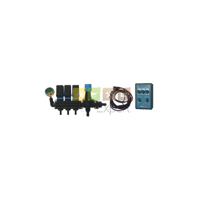 Ce kit est composé d'une entrée diam 19, des sorties diam 13, retour regul diam 19, manomètre de 0 à 25 bar et un boitier de commande avec faisceau.