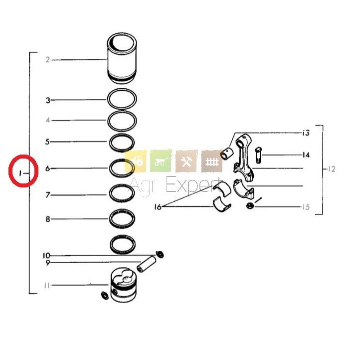 Kit chemise piston moteur IH FD128 tracteur McCormick IH F-240, F-240 S, F-240 V