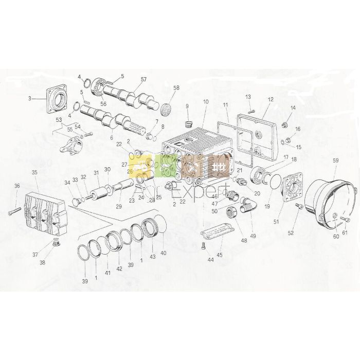 Kit complet joint pour piston de pompe C 53.2. Contient : 6 X n° 1, 6 X n° 39, 3 X n°40, 3 X n°41, 3 X n°42, 3 X n° 43.