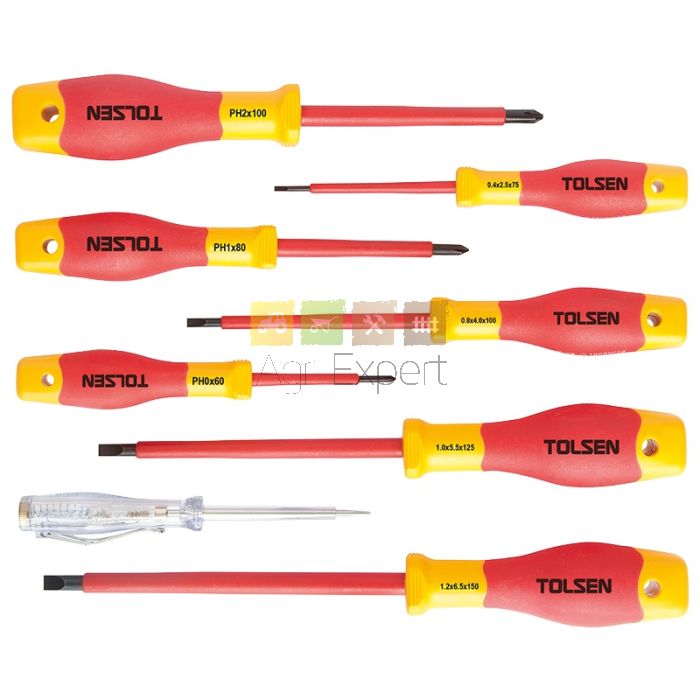 Kit de 8 tournevis pro isolé pour électricien Phillips, Plat, Torx et Testeur avec manche composite bi-matière Certification VDE/GS 1000V norme EN60690. Tolsen