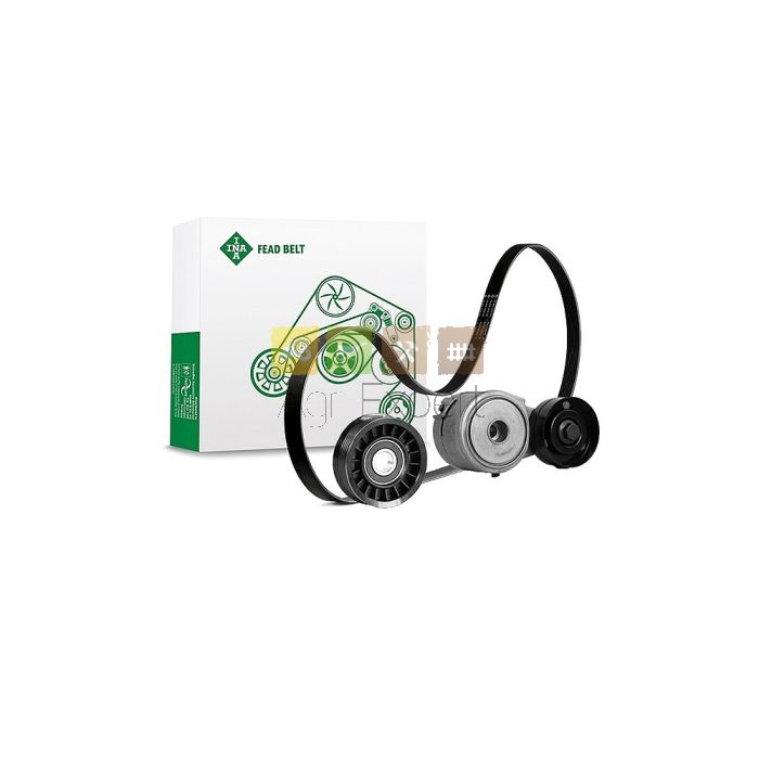 Kit avec Courroie 2228x21,34 - 6 stries , rouleau guideur, poulie (80mm), tendeur pour pompe à eau moteur montage sans compresseur de climatisation
