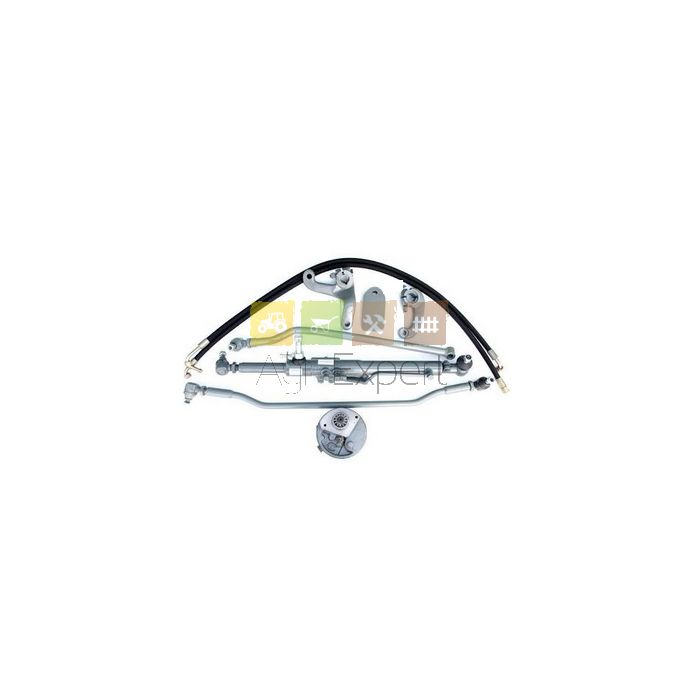 barres de direction, vérin d'assistance, pompe hydraulique avec réservoir, leviers de direction, barre de réglage, tuyau, colliers, flexibles et boulons.