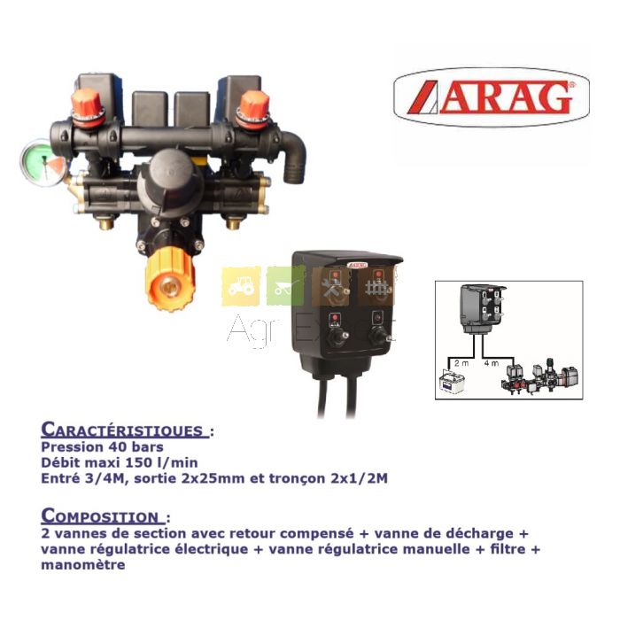 Kit de distribution Viti Arbo complet avec retour compensé pour atomiseur agricole avec boitier de commande 40 Bars Maxi distributeur ARAG