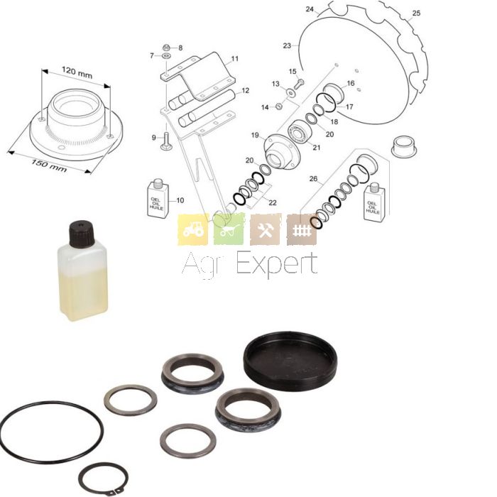 Kit de réparation moyeu déchaumeur Amazone Catros, Cenius, Centaur, Certos, Cirrus, ED, Primera, 78100977