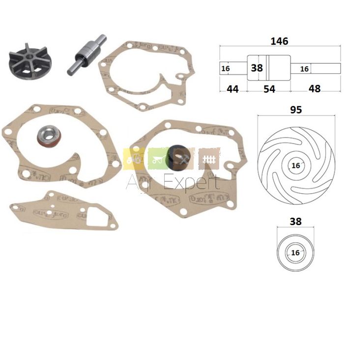 Kit réparation pompe à eau tracteur John-Deere 830, 930, 1020, 1120, 1350, 1550, 1630, 1750, 1830, 1850, 1950, 2020, 2030, 2120, 2130, 3100, 3110, 3200, 3210, 3300, 3310, 3400, 3410, 5200, 5300, 5310, 5400, 5410