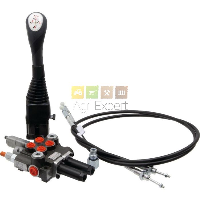 Kit distributeur pour chargeur frontal 2 double effet avec une position flottante, commande à distance 2000mm, poignée monolevier en croix avec un interrupteur