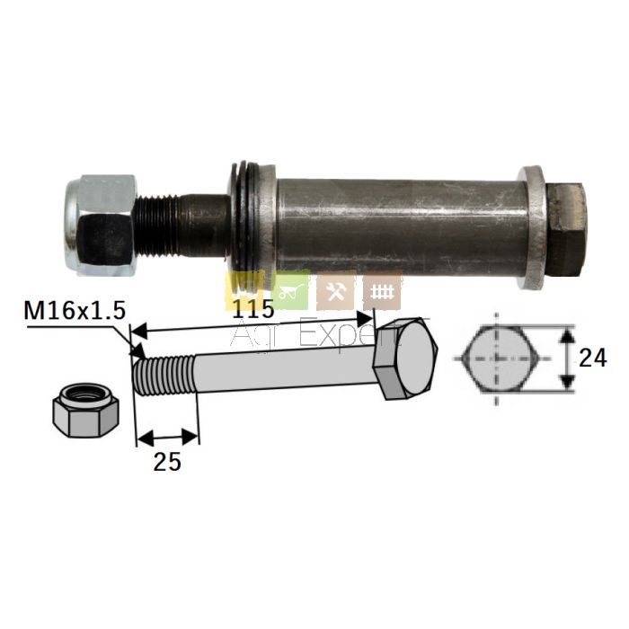 Kit entretoise, rondelle et boulon M16 x 1,5 x 115 mm, 8.8 - longueur de filetage 25 mm, avec écrou autobloquant