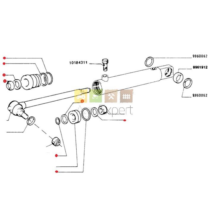 Kit joint de vérin direction GEA tracteur Fiat 570F, 570FDT, 50-86V, 55-86F, 55-86FDT, 55-86SV, 55-86V, 60-86F, 60-86FDT, 60-86SV, 60-86V, 62-86FDT, 70-86SV, 70-86V, 70-86VDT, 72-86FDT, 82-86FDT