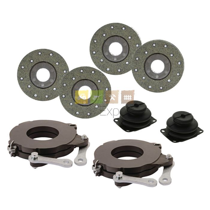 Kit 2 mécanismes + 4 disques Ø 152 mm et 2 soufflets pour tracteur Renault 60S, 70S, 80S, 90S, 96, R89, 351M, 421, 421M, 461, 461M, 461S, 462, 480S, 490S, 521S, 551, 556, 556S, 651, 656, 656S, 751, 751S, 782, 782-4, 851, 851S, 951, 1151, 1151-4, 32-50, 32-60, 34-60, 42-70, 44-70 Disque de frein 37 dents, Ø 152mm épaisseur 13 mm