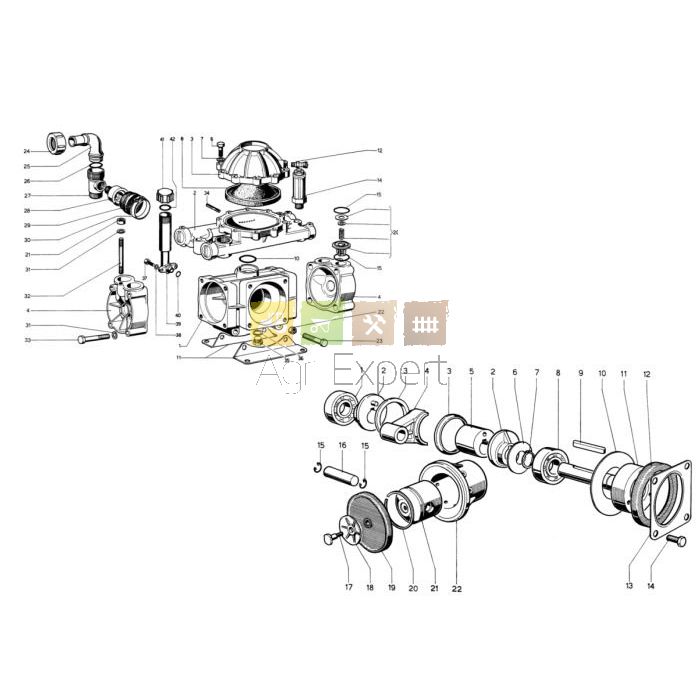 Kit membranes caoutchouc pour pompe 31/S. Pompe débit 30 l /min. Repères 8, 15, 29 et 19 B.