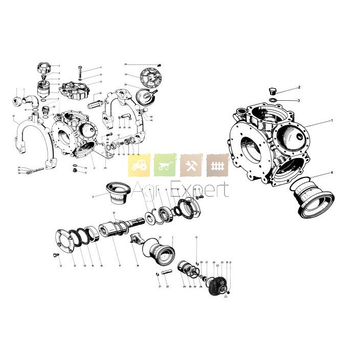 Kit membranes caoutchouc pour pompe 67 / D. Pompe 65 l /min. Pression 15 bar. Repères 25, 29, 40.