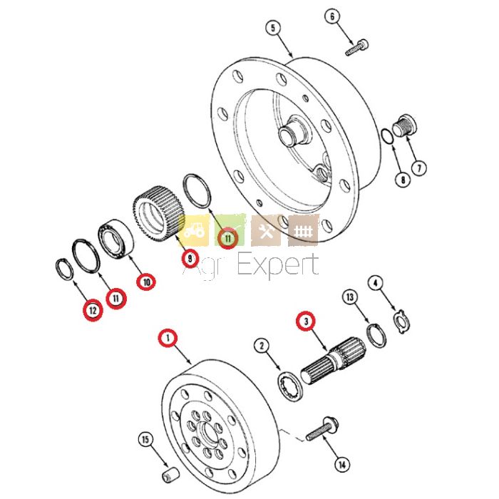 Kit réducteur pont avant APL330 tracteur Case IH 743, 743XL, 745S, 745XL, 844, 844S, 844XL, 845, 845XL, 856, 856XL, 238, 248, 258, 268, 288 etc...