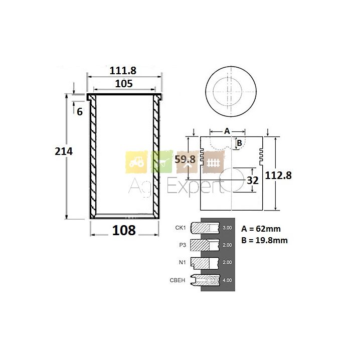 - 6 Chemise sèche alésage 105 mm hauteur total 214 mm