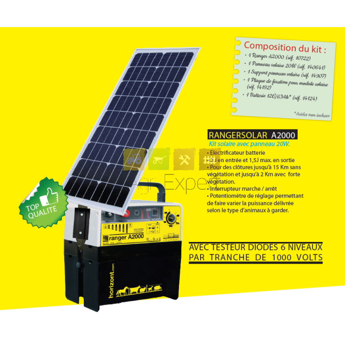 Le Ranger A 2000 d'Horizont est très facile à installer : il suffit d'emboiter le panneau sur la poignée de l'électrificateur et brancher !
