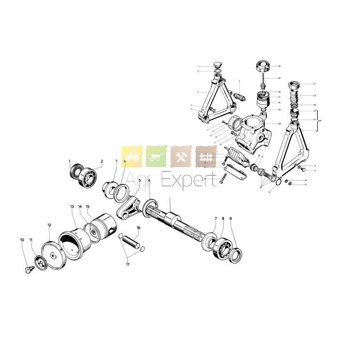 Kit vilebrequin pour pompe 151 / SD. Pompe 150 l /min, pression 15 bar. Repères 6,10, 12, 17, 23, 25, 29, 31, 37, 17B.