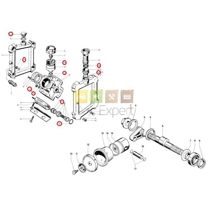 Kit vilebrequin pour pompe 201 / SD. Débit 200 l /min. Pression 15 bar. Repères : 1,5,9,11,19,21,26,28,33,37.