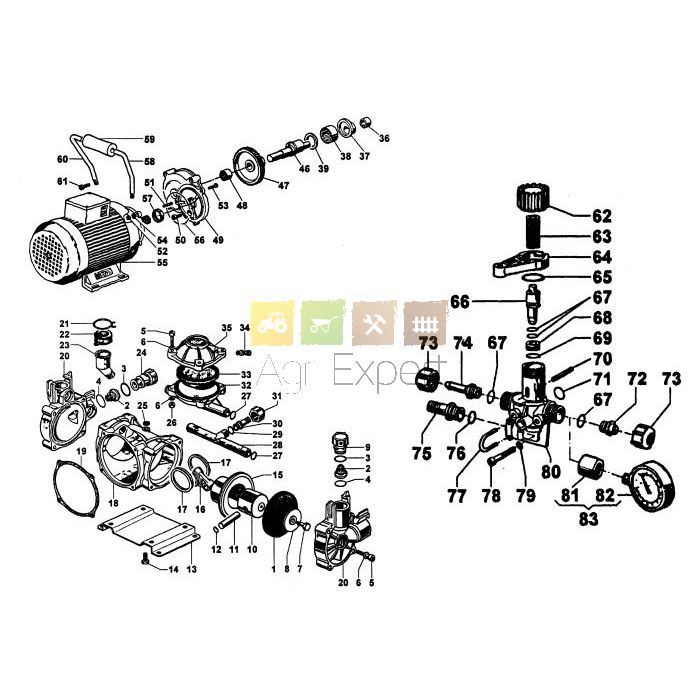 Kit vilebrequin pour pompe ELP 20 RTE. Contient : 1 X n°57, 1 X n°56, 4 X n°27, 4 X n°3, 4 X n°4, 1 X n° 19.