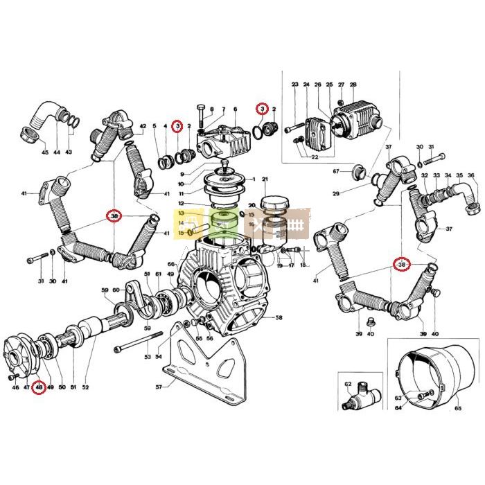 Kit vilebrequin pour pompe Poly 2210. Contient 10 X n°3, 10 X n°38, 1 X n° 48, 2 X n°49, 5 X n° 5.