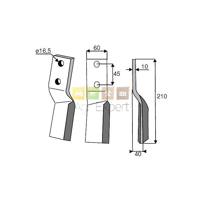 Lame de rotavator Bréviglieri Frangor 60x10x210 EA44 D16.5