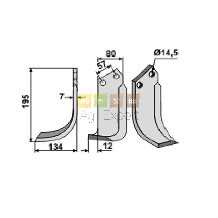 Lame de rotavator hélicoïdale Celli 80x7x195 EA57 D14.5