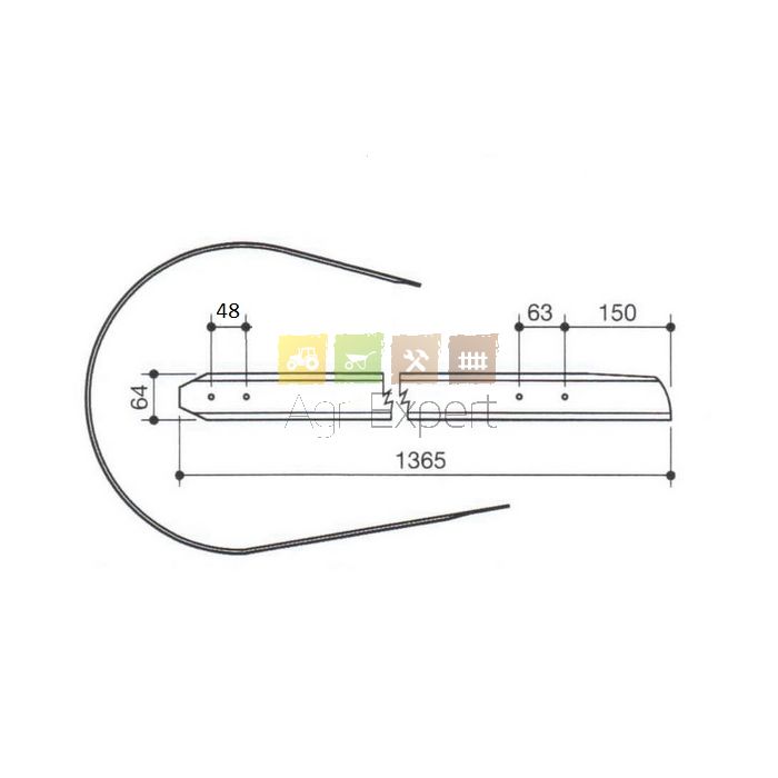 Débourreur 1365 x 64 mm entraxe 48 / 63 mm