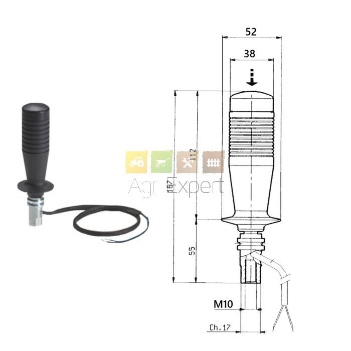 Levier de commande pour distributeur électrique 1 fonction, filetage femelle M10, longueur câble 410 mm, fixation sur un distributeur hydraulique pour une fontion supémentaire.