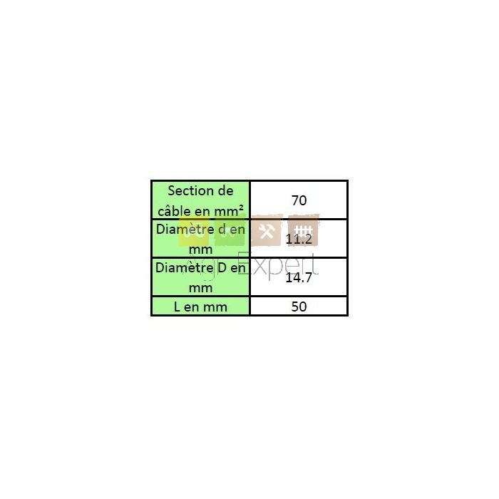 | Diamètre ( mm ) | 70 mm² |