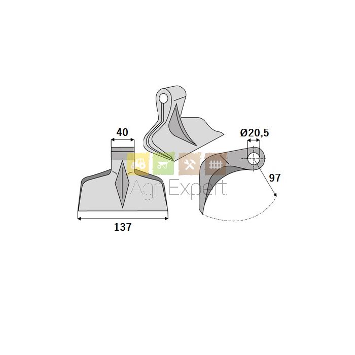 Marteau de broyeur M4 alésage 20,5 - rayon 97 - largeur de travail 137 mm