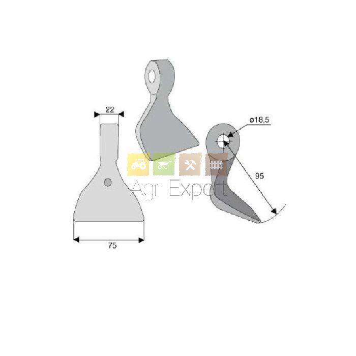 Marteau de broyeur alésage 18,5 - rayon 95 - largeur de travail 75 mm