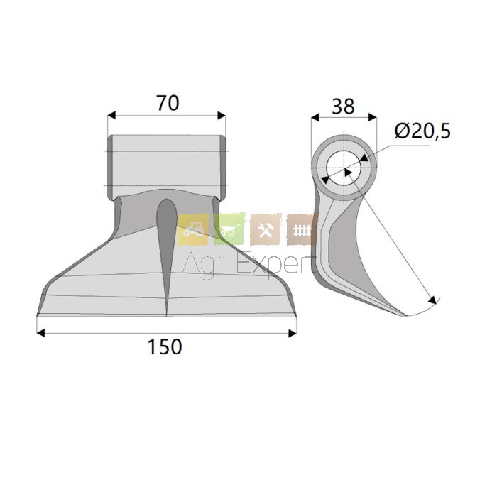 Marteau de broyeur Desvoys alésage 20,5 - rayon 94 - largeur de travail 150 mm, M56