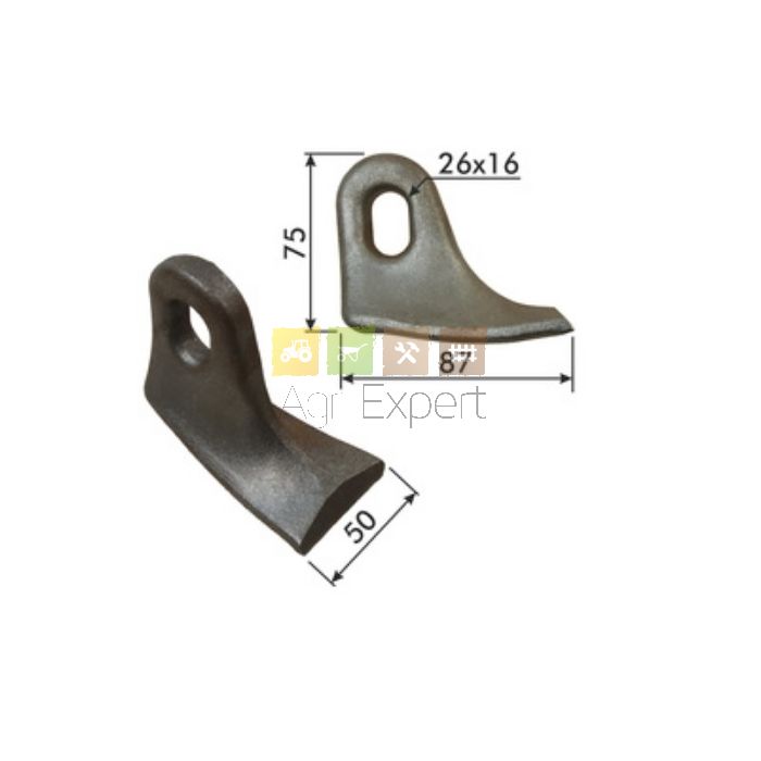 Marteau de broyeur alésage 16x26 - longueur 75 - largeur de travail 50 mm