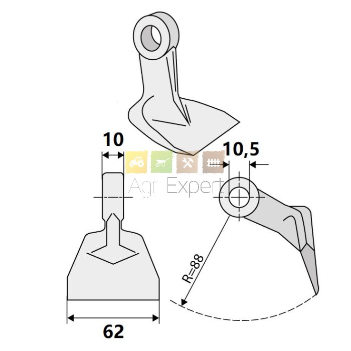 Marteau de broyeur RM81 McConnel alésage 10,5 - rayon 88 - largeur de travail 62 mm