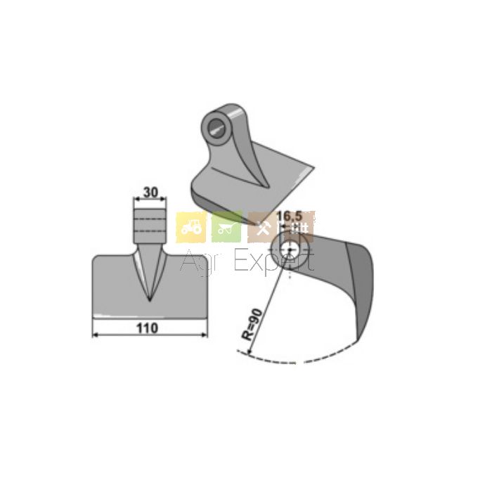Marteau de broyeur alésage alésage 16,5 - rayon 90 - largeur de travail 110 mm