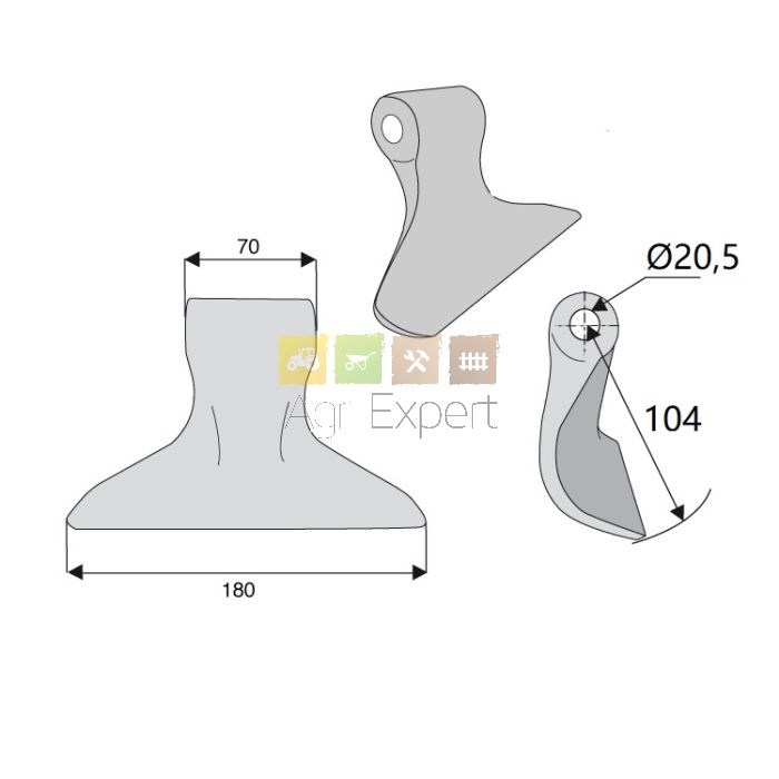 Marteau de broyeur alésage 20,5 - rayon 104 - largeur de travail 180 mm