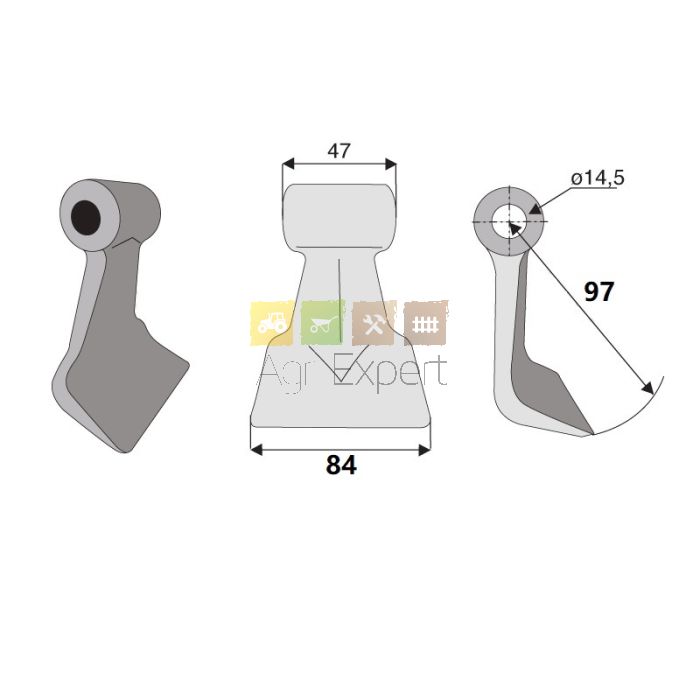 Marteau de broyeur Agromec, Agrimaster, RM339, alésage 14,5 - rayon 97 - largeur de travail 84 mm