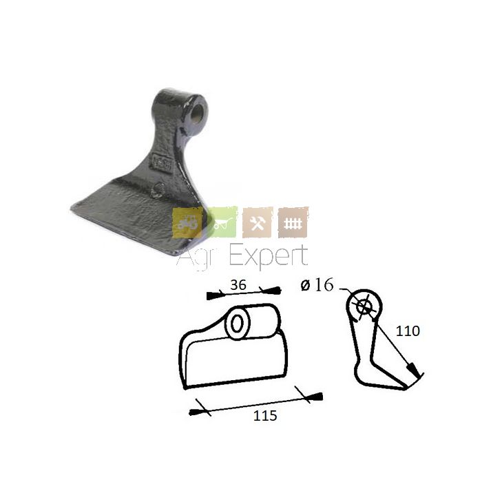 Marteau largeur 115 alésage 16x36 rayon 110 mm broyeur Kuhn adaptable