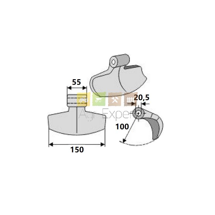 Marteau de broyeur alésage 20,5 - rayon 100 - largeur de travail 150 mm
