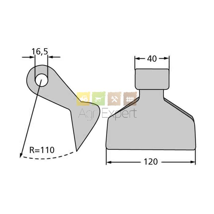 Marteau Seppi Faure référence RM4-M41 largeur 120mm fixation D16x40mm R110mm