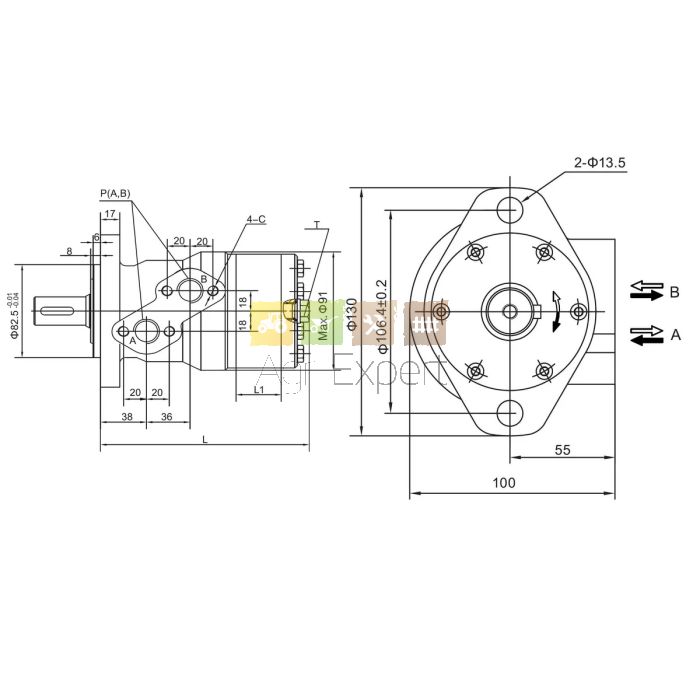 Moteur hydraulique OMP 200 axe Ø 25 mm, raccord 1/2" Puissance max. 10 KW