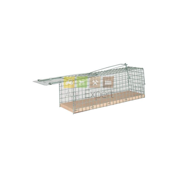 Nasse à rats Alive en fil de fer zingué avec trappe de piégeage à ressort et ouverture d'évacuation.
