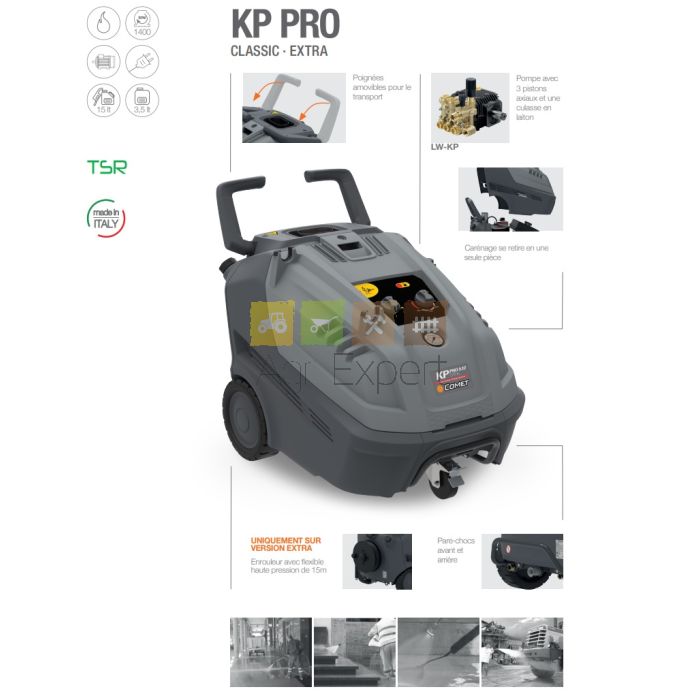 Nettoyeur Haute Pression à eau chaude Comet KP Classic 3.10 3KW monophasé 230V, Pression Max 150Bar, Débit d'eau Max 600L/h, Chaudière température de l'eau Max 110°C