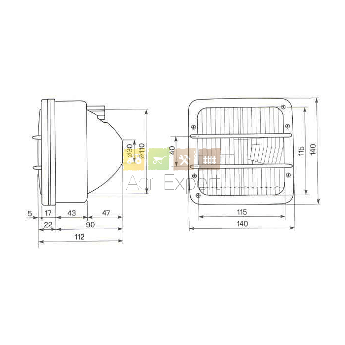 Nécessite une ampoule CE 12V 40W et une ampoule témoin 12v 4W.