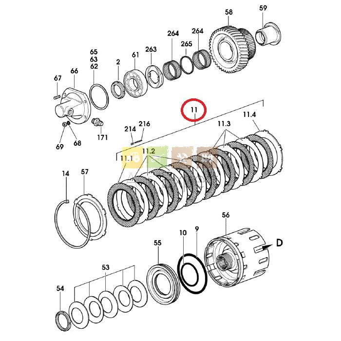Pack embrayage multi-disque arbre secondaire 8 disque fiction Ø167mm - épaisseur 3.5mm - Z58 intérieur + 4 disque intermédiaire Ø121,8/179,8mm - épaisseur 2,1mm - Z6 extérieur + 3 disque intermédiaire + 1 disque intermédiaire